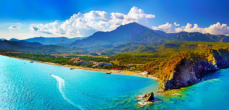 В 42 км к югу от Антальи, у подножья гор Таурус, расположен город Кемер. Этот утопающий в густой зелени курорт, окруженный сосновыми лесами и цитрусовыми садами, омывается кристально чистыми водами Средиземного моря.